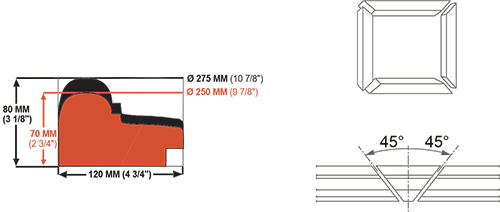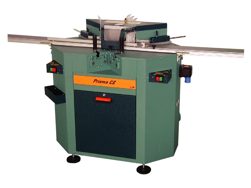 Traçadora de disco de corte manual, com curso horizontal, para "corte em V" a 45º graus, em ambas as extremidades, em molduras de madeira de qualquer formato e tipo (todas as madeiras-alumínio coberto, etc.).
