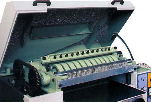 SISTEMA DE ARRASTO Os rolos superiores de arrasto bem dimensionados e os calcadores de entrada fraccionados com a superfície endurecido em contacto com a madeira garantem durabilidade, um arrasto eficaz e um aplainamento perfeito em toda e qualquer espécie Os rolos inferiores da mesa são reguláveis em altura, o que Opcional: Rolo de arrasto fraccionado. |